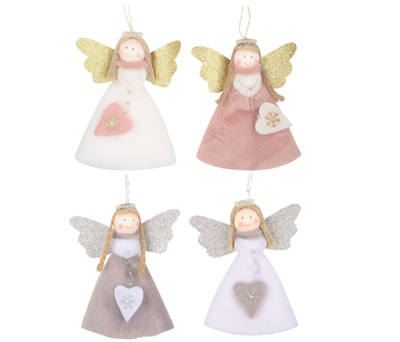 Anděl plyšový se srdcem 14cm k zavěšení, 18037