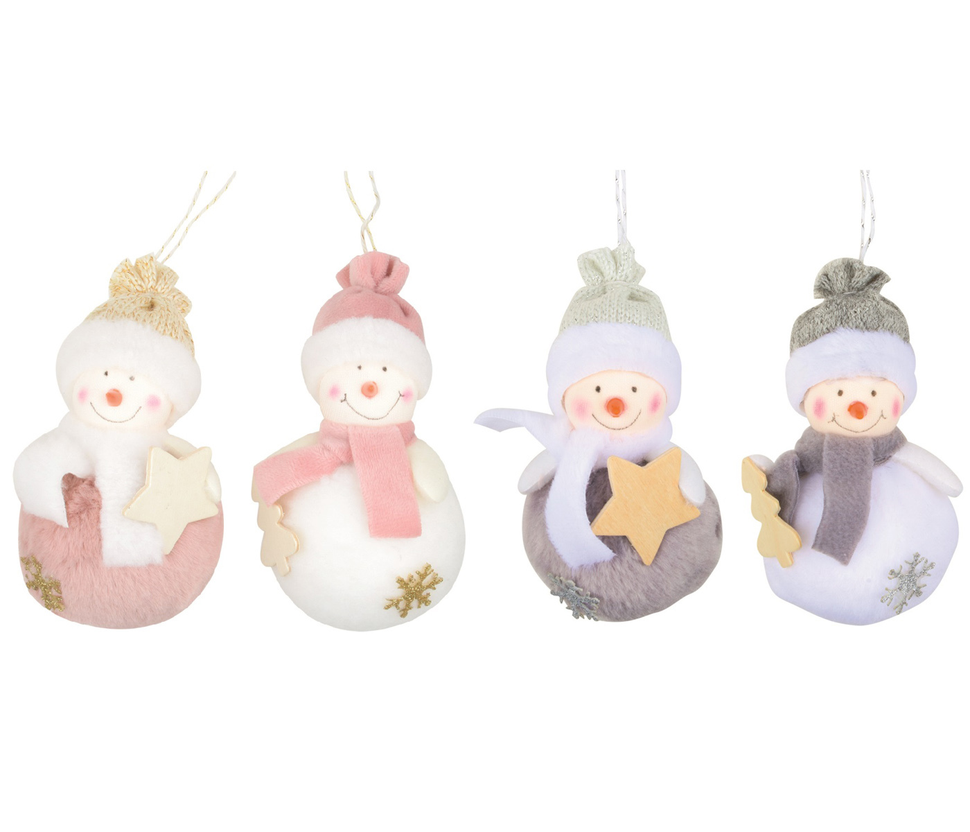 Dekorace vánoční - Sněhulák plyšový 12 cm na zavěšení, 18044
