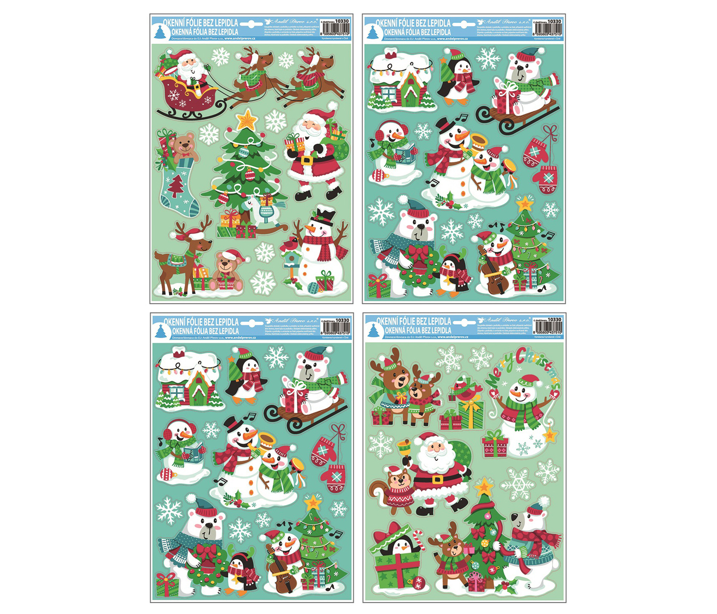 Okenní fólie s glitrem barevná 42x30 cm, sněhuláci, 10330
