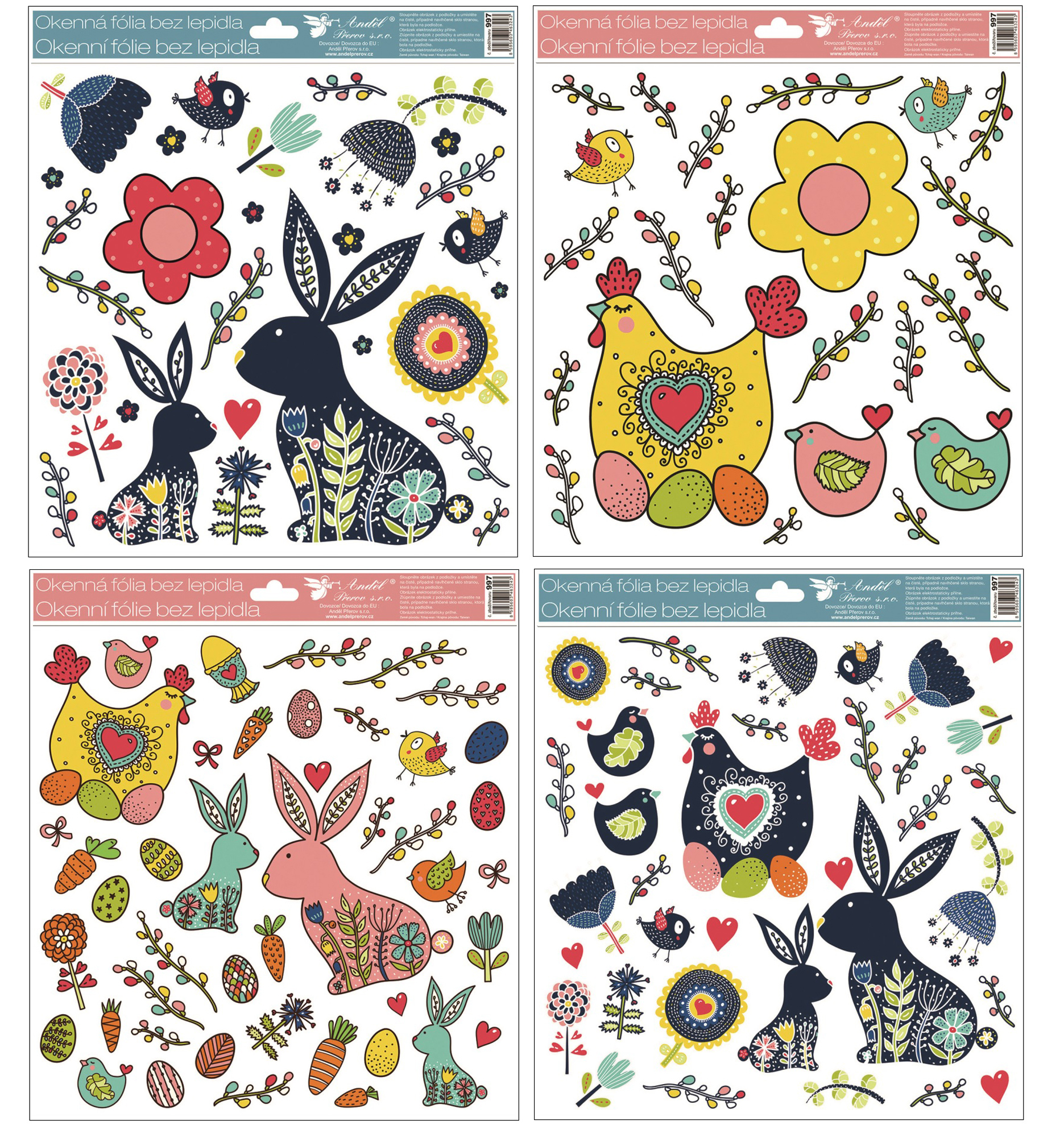okenní fólie ve velikonočním motivu - fólie neobsahuje lepidlo, jednoduše přilne na čistém okně, zrcadle apod.- rozměr: 30 x 33,5 cm - mix motivů przeczytaj całość