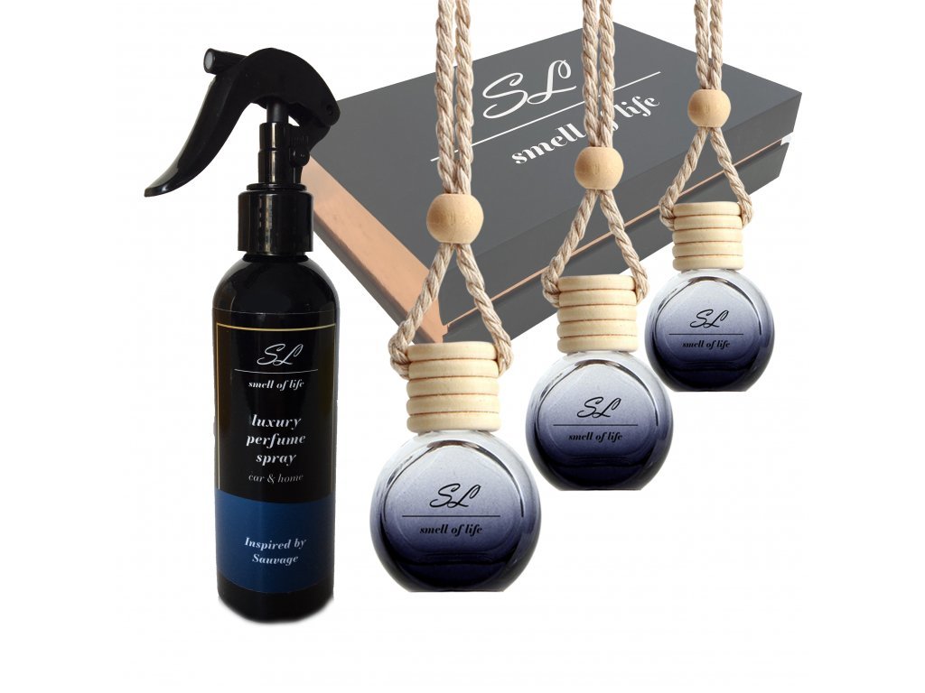 Dárková sada 3 for HIM - Parfém do bytu/auta inspir. Sauvage 200 ml - 3 x Vůně do auta inspir. Sauvage, One Million, a Bottled 10 ml