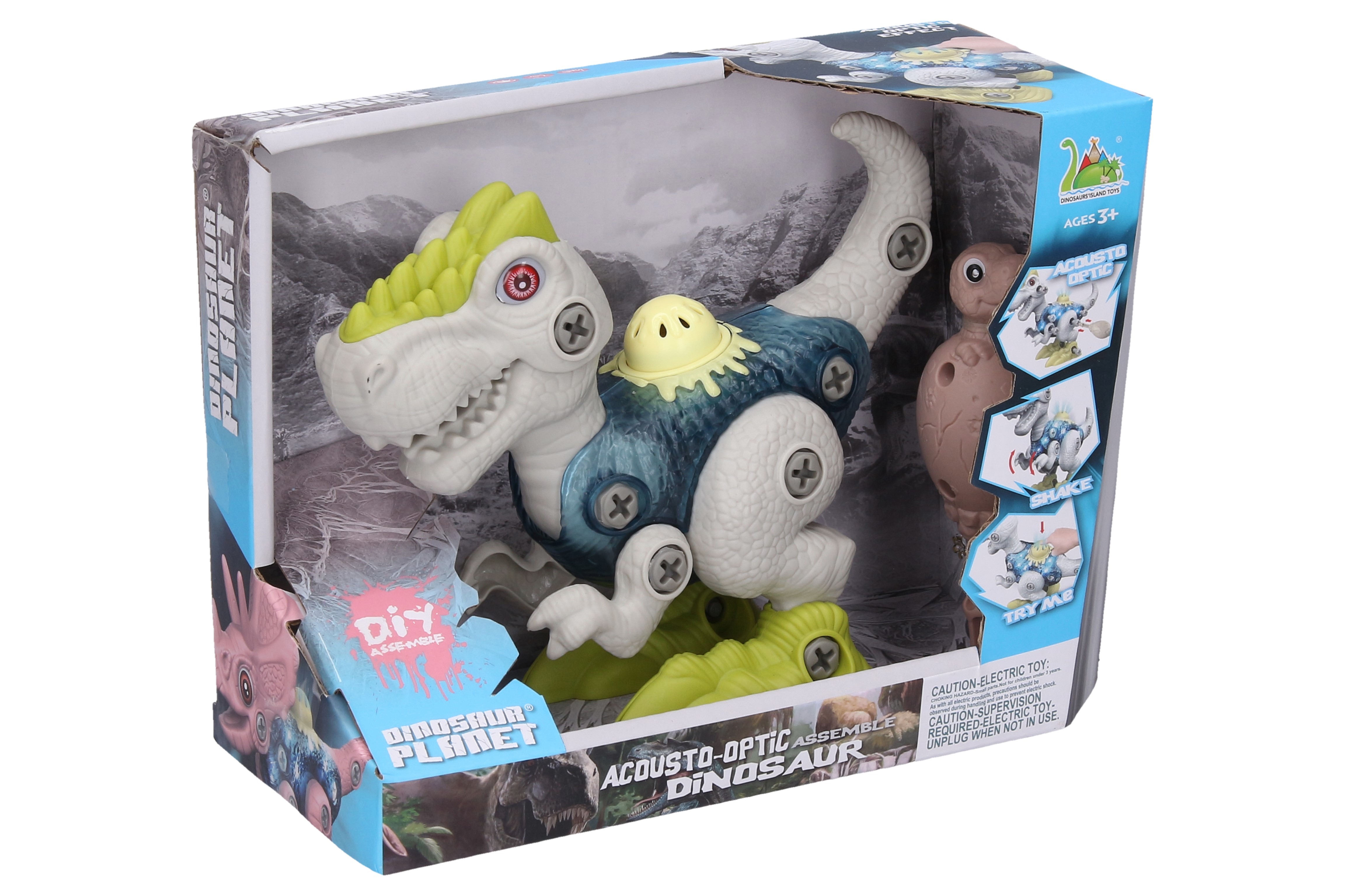 Dino šroubovací. Velikost 17cm. Po zmáčknutí tlačítka na zádech vydává zvuky a bliká. Balení obsahuje dinosaura a šroubovák. 2x1,5V AG13/LR44 baterie součástí balení. przeczytaj całość