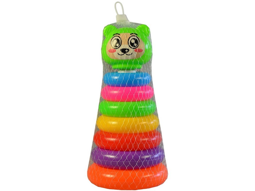 Medvídek s kroužky.Medvídek na tyči s barevnými kroužky.Barevné kroužky tvoří tělo medvídka.Kroužky se skládají od největšího po nejmenší.Skládání na tyč podporuje motoriku dítěte. przeczytaj całość