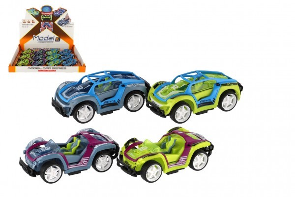 Auto závodní kov/plast 11cm na zpětné natažení 4 druhy 12 ks v boxu
