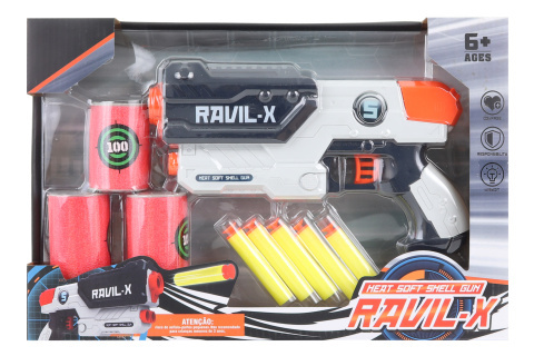 Plastová pistole na pěnové náboje. Balení obsahuje pistoli, 5 ks pěnových nábojů a 3 pěnové válce jako terče. Rozměr balení cca 33,5 x 22,5 x 6 cm. Věk 6+ przeczytaj całość