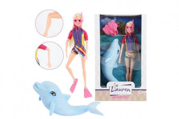 Panenka potápěčka kloubová plast 30 cm s delfínem a doplňky v krabici