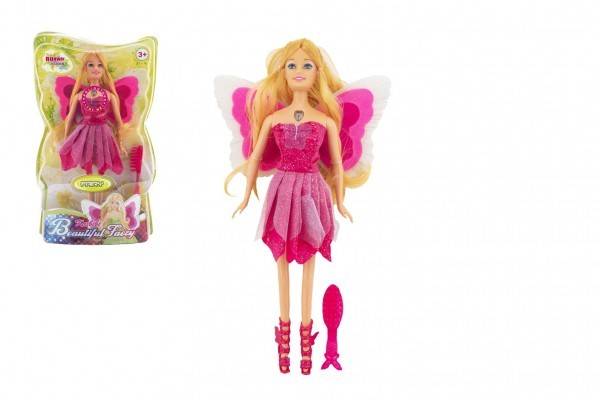 Panenka víla s křídly plast s doplňky 30cm růžová na baterie se světlem v blistru 20x32x7cm