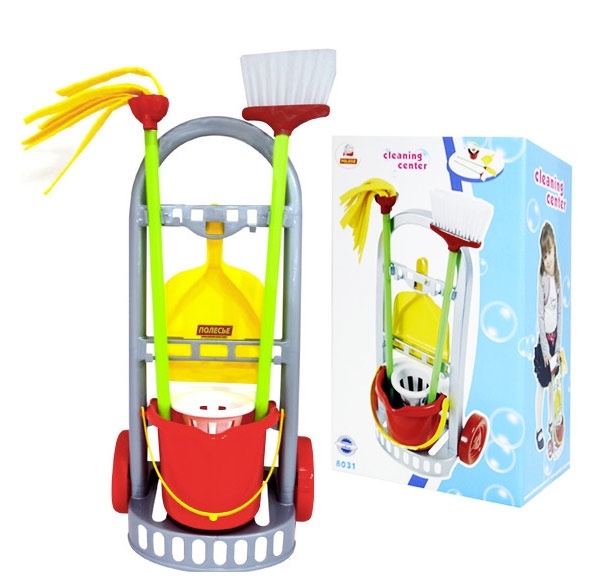Wader wózek do sprzątania, odpowiedni do zabawy w mieszkaniu lub na działce. Wykonany z masywnego plastiku, opakowanie zawiera części pokazane na ilustracji. przeczytaj całość