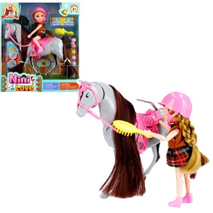 Panenka má pohyblivé ruce a nohy ohnuté v loktech a kolenou, dlouhé vlasy spletené do 2 copů, koník má pohyblivou hlavu a krk, dlouhou hřívu a ocas, které se dají česat, souprava je dostupná ve dvou barvách. Panenka se vejde i do malé kabelky, b> takže bude perfektní jako společník na cesty!...