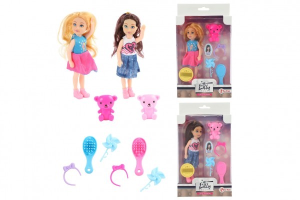 Panenka Lilly česací plast 14cm s doplňky 4 druhy v krabičce 13x22x4cm