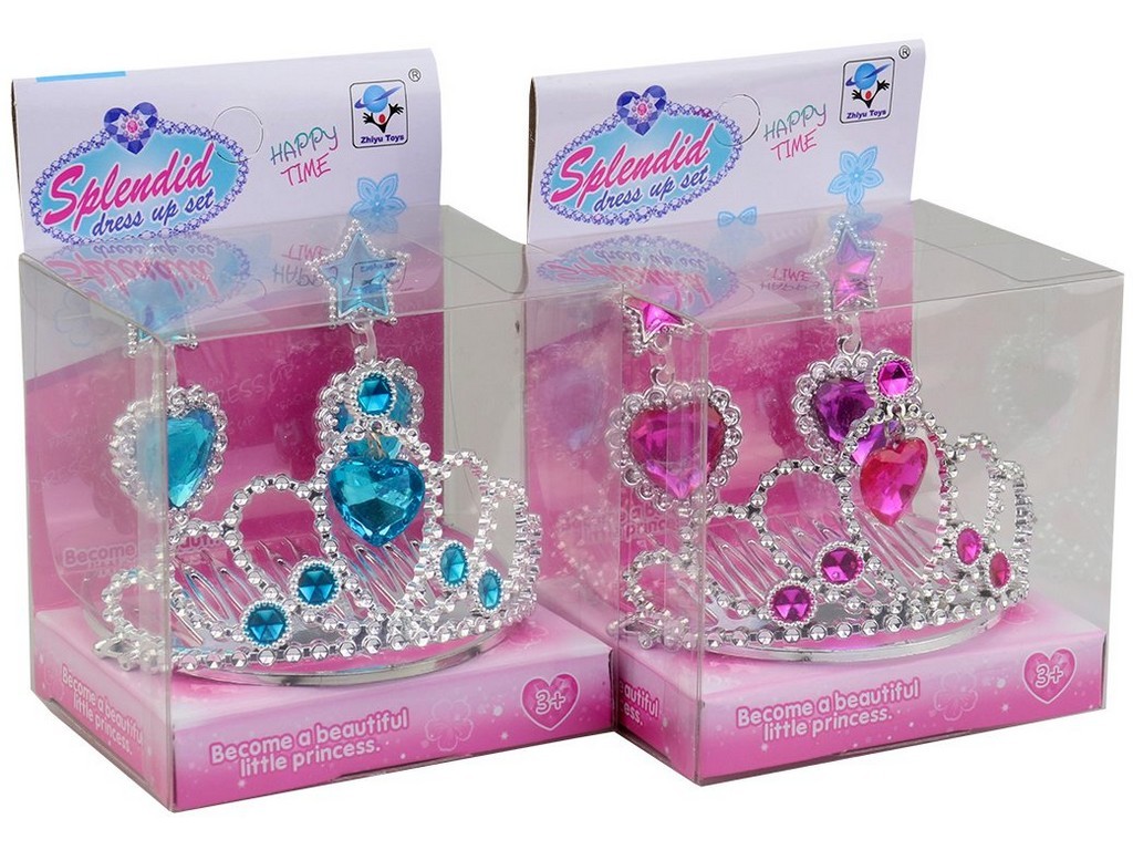 Korunka s příslušenstvím, 8x8x6cm. V cípu korunky je kruh. Hračka je určena pro děti 3+. Rozměr hračky je 8,5 x 6,5 x 5. Materiál hračky je plast. Balení hračky je box. Produkt je určený pro holky. Baterie nejsou součástí balení. przeczytaj całość