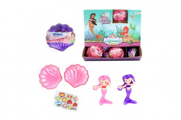 Mořská panna v mušli plast se samolepkami mix druhů 7x6x3,5cm 48ks v boxu