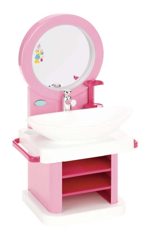 S překrásným BABY born retro umyvadlem je i čištění zubů zábava. Nejdřív rozsviť světla. Rám zrcadla svítí! Odborník na dentální hygienu medvídek Bruno už má pro BABY born připraven zubní kartáček. Jakmile se kartáček dá do práce, uslyšíš z něj zvuky čištění zubů. Po vyčištění zubů je pro panenku...