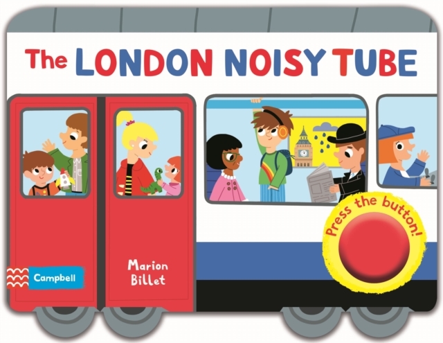 A tube train shaped board book featuring a sound button with a real mind the gap message. przeczytaj całość