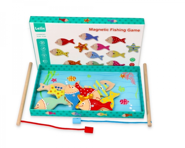 Magnetická hra - Akvarium.Snadná a zábavná hra pro celou rodinu. Každý hráč je vybaven vlastním prutem s magnetem, který musí být hoden a chycen. Každá ryba má na zadní straně číslo, které odpovídá počtu bodů za úlovek, takže můžete hrát dvěma způsoby: kdo uloví více ryb nebo kdo získá nejvíce...