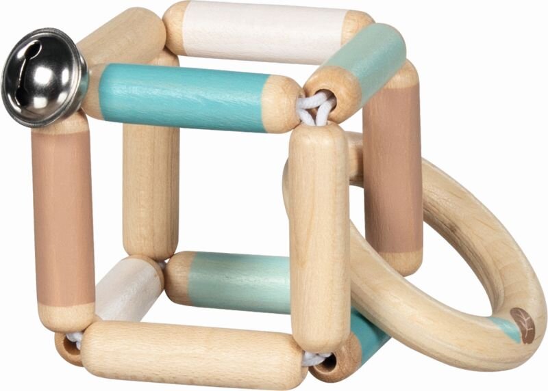 Drewniana grzechotka bryła z dzwoneczkiem niebieska Goki