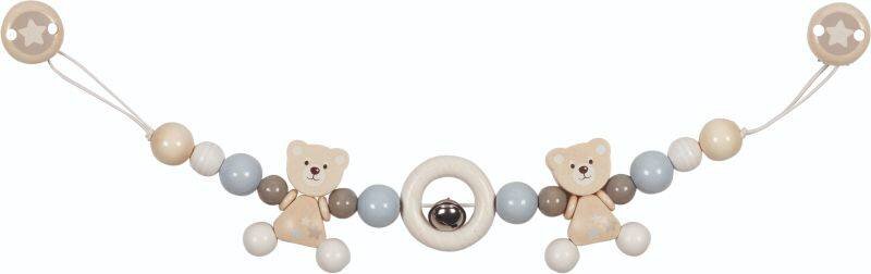 Niezwykła dekoracja wyposażona w dzwoneczek, mocowana za pomocą dwóch klipsów. Zawieszka została wykonana z drewna. Zawieszona w wózku staje się dla najmłodszych atrakcją, która zachęcająca do prób chwytania. Stanowi doskonały i naturalny trening małej motoryki i koordynacji ruchowej.Wymiary: 40 cm przeczytaj całość
