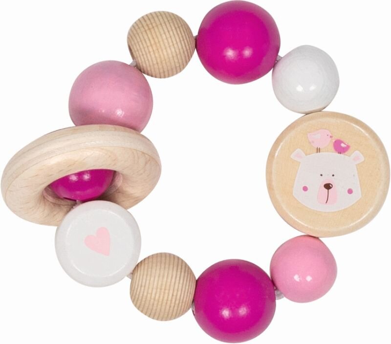 Drewniana grzechotka pierścień miś polarny Goki to zabawka rozwojowa polecana dla dzieci już od pierwszych dni życia.Grzechotka dla niemowlaka ma formę bransoletki z dużymi koralikami oraz drewnianym ringiem. Wykonane z drewna elementy różnią się fakturą, wielkością oraz kolorem.Drewniana...