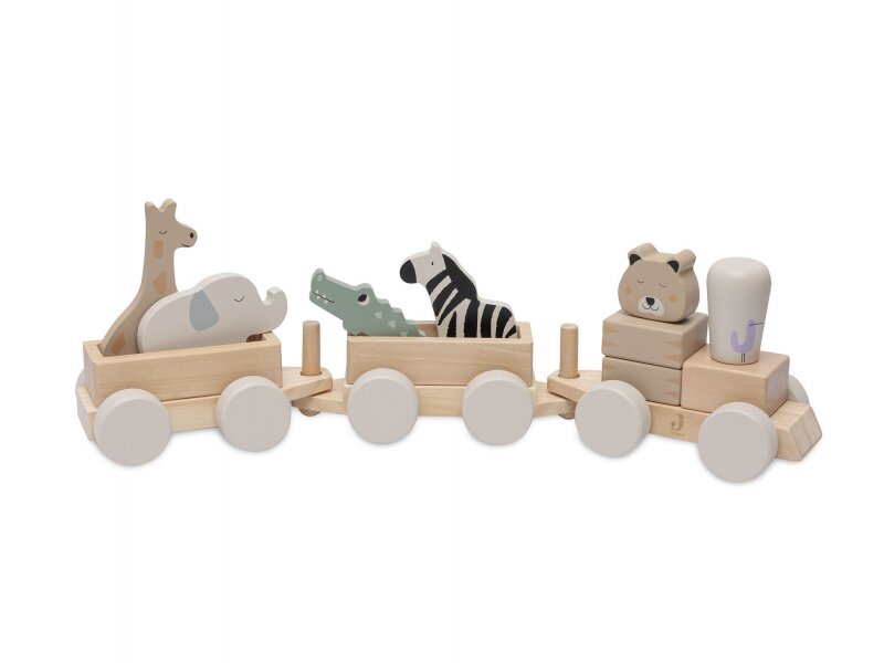 Dřevěný vláček se dvěma vagóny, čtyřmi zvířátky z džungle a strojvedoucím v podobě geparda zajistí vašemu dítěti hodiny kreativní zábavy. Vláček v krásném dřevěném provedení bude sloužit i jako originální dekorace v dětském pokoji.