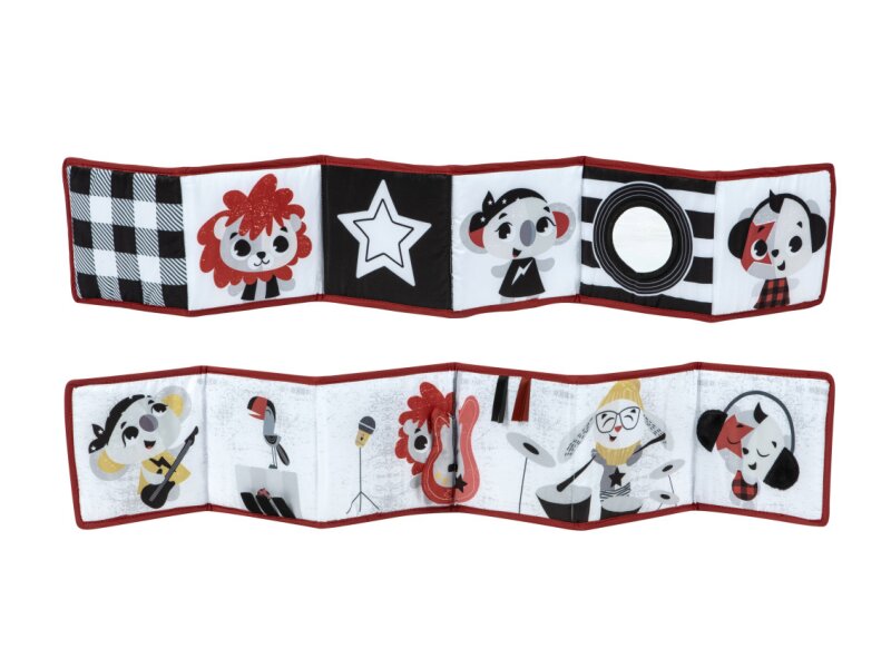 Oboustranná textilní knížka pro nejmenší Tiny Love je určena do kočárku, postýlky i na hrací deku.Kniha nabízí dvě strany pro dvě vývojová stádia dítěte:0-3 měsíce: strana s bezpečným zrcátkem a vysoce kontrastními, jednoduchými obrázky v základních barvách, které podněcují rozvoj smyslů a emoční...
