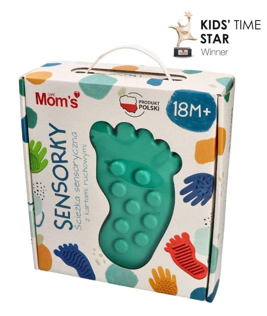 Ścieżka Sensoryczna Sensorky to wyjątkowy zestaw składający się z 8 elementów: 4 stóp i 4 dłoni, z których każdy posiada inna strukturę sensoryczną. W komplecie znajduje się również talia kart ruchowych, które inspirują do różnorodnych ćwiczeń i zabaw ruchowych.