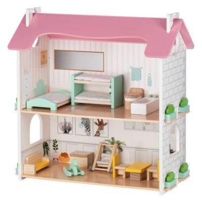 Domeček pro panenkyideální pro kreativní hrurozměry: 48,3 x 21 x 48 cmvhodné pro děti od 3 letsoučástí balení: stůl, 2 židličky, sedačka, bedýnka na hračky, kočárek, houpačka ve tvaru koníka, postel, patrová postel, vana, záchod przeczytaj całość