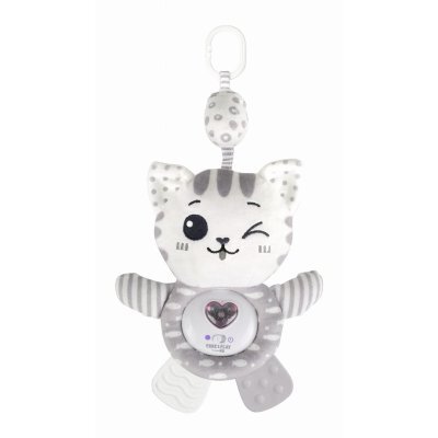 Hudební hračkaplyšová hračka kočička s kousátkem, 5 melodiemi a blikajícím srdíčkemhračku lze připevnit na kočárek, postýlku, autosedačku apod.funguje na baterie, které jsou součástí balení przeczytaj całość