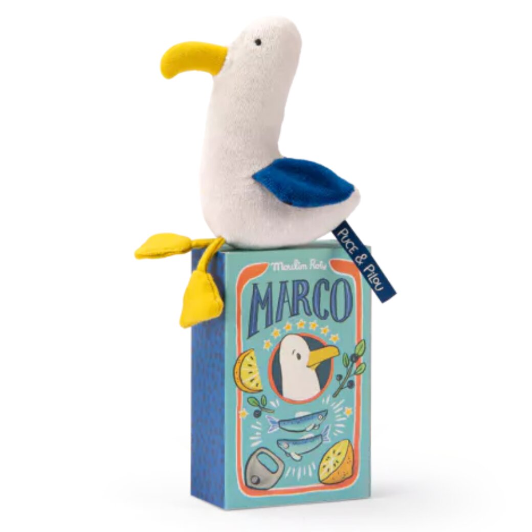 Marco, roztomilý racek, který cinká! Toto  chrastítko je snadno uchopitelné, měkké na dotek a ideální na nošení všude s sebou!Rozměr: 8,5 x 4,5 x 13,5 cmMateriál: Bavlna, polyesterÚdržba: praní na 30°C, program na vlnu, nesušit v sušičce.Věk: od narození. przeczytaj całość