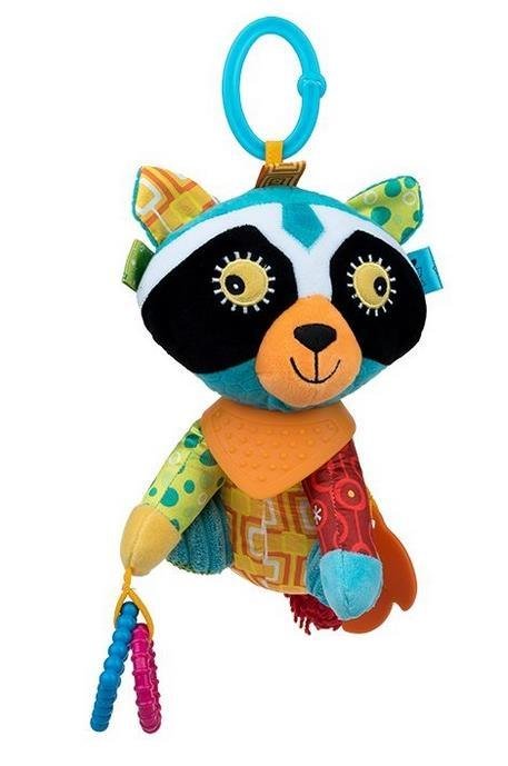 Przystojniak Ronnie ma piękne kolorowe futerko i puszysty ogon, który wyróżnia go spośród wszystkich Pluszaków. Ten uroczy szop zachwyca nie tylko imponującym wyglądem, ale też przemiłym usposobieniem. Lubi się przytulać i rozweselać maluszki za pomocą zabawek, które nosi przy sobie: kolorowych zawieszek, chustki z wypustkami i gryzaczka kryjącego się w jego kieszeni.