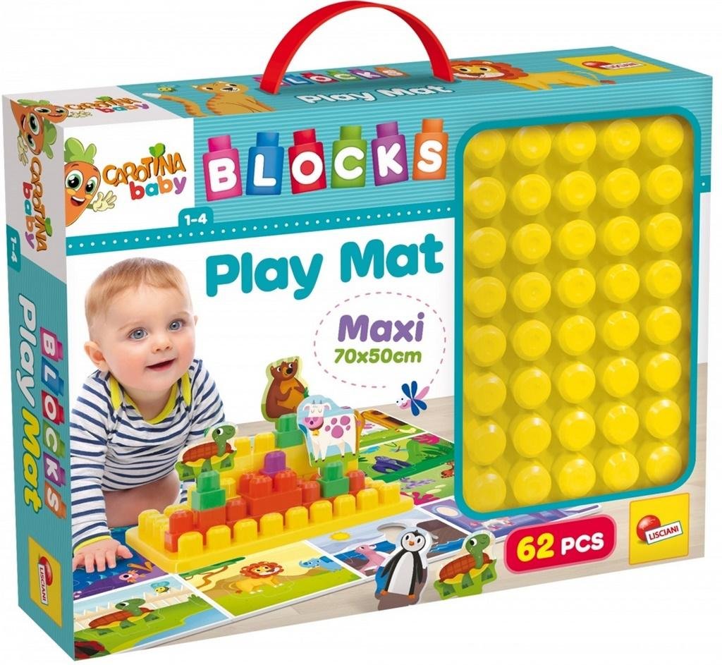 Zestaw z klockami konstrukcyjnymi Carotina dla najmłodszych. Niektóre klocki posiadają specjalne wgłębienia w które można wkładać kartonowe zwierzątka, znajdujące się w opakowaniu. Poza klockami, w opakowaniu znajduje się kartonowa mata ze zwierzątkami, które należy dopasować. Klocki wykonane są z wytrzymałego plastiku, odpornego na złamania.