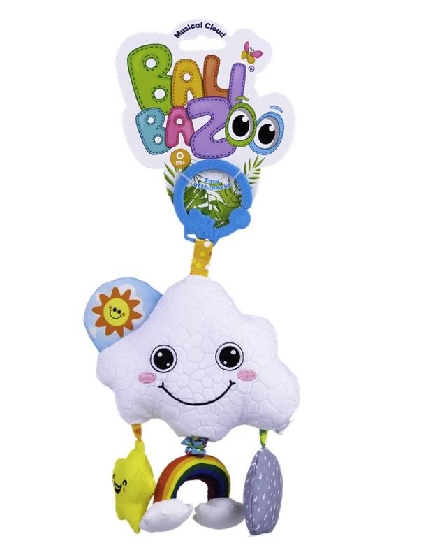 Uśmiechnięta chmurka poprawi humor nawet największemu smutasowi! Dzięki swojej wbudowanej pozytywce może wywołać uśmiech na małej buźce. Uruchomi się ona po pociągnięciu tęczy. Jeżeli to nie wystarczy, aby na małej buźce pojawił się uśmiech to oprócz wesołej melodii, dziecko będzie miało do dyspozycji również szeleszczące elementy oraz bezpieczne lusterko.