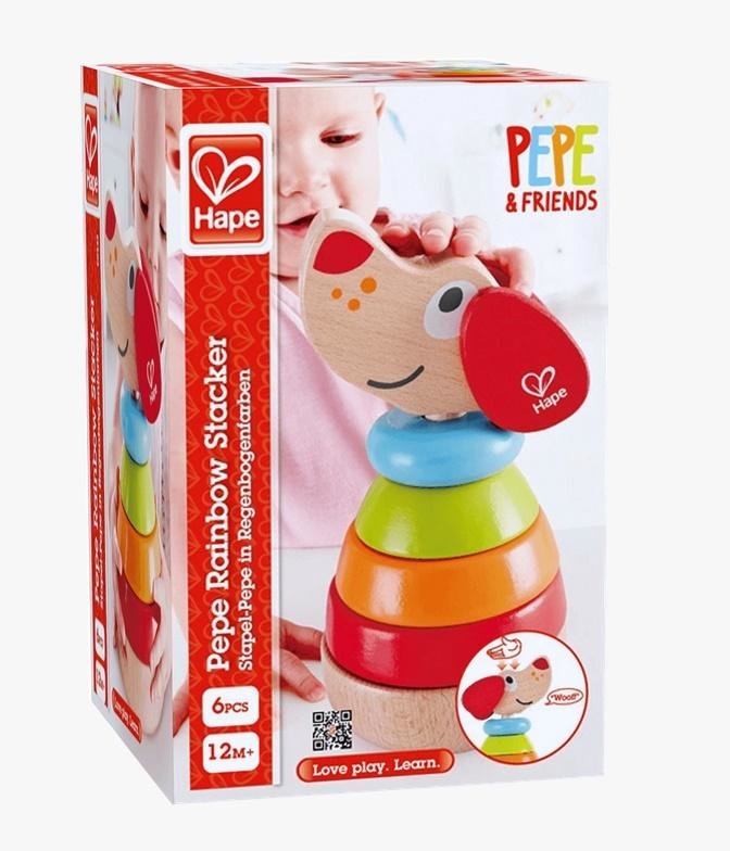 Pepe dźwiękowa układanka, to klasyczna zabawka w nowoczesnej odsłonie! Po przyciśnięciu główki piesek wesoło szczeka. Mechanizm dźwiękowy nie wymaga baterii, co sprawia, że zabawka jest w pełni bezpieczna. Zabawa polega na nakładaniu kolorowych obręczy na patyczek, tworząc kształt ziwerzaka....