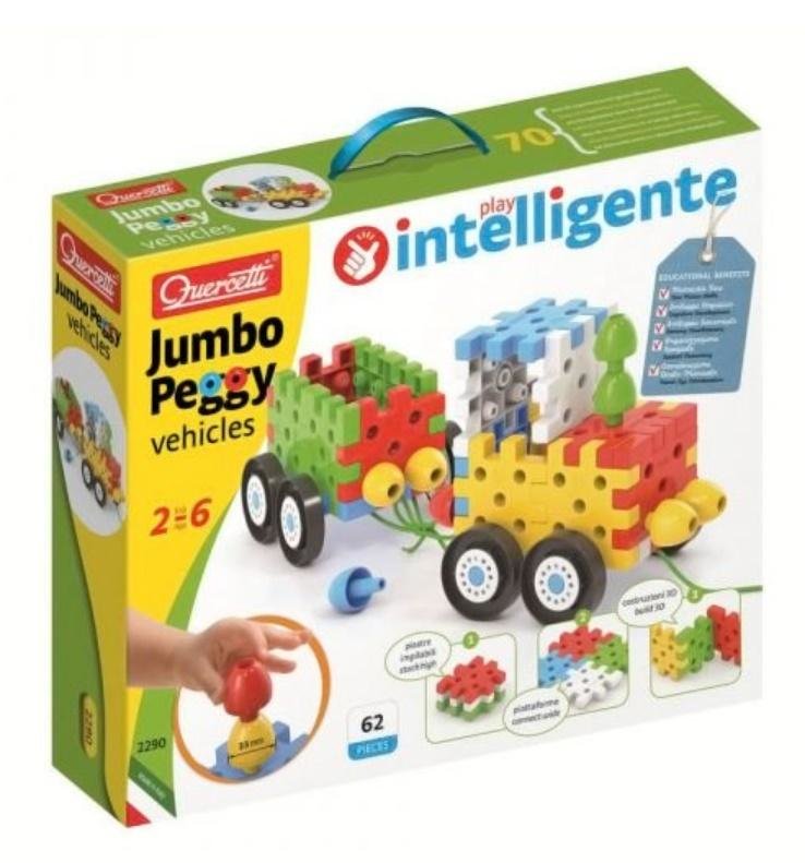 Dzięki temu kreatywnemu zestawowi, dzieci mogą używać kolorowych kołeczków, podstaw i kół by stworzyć swoje własne pojazdy. Duże zaokrąglone komponenty są łatwe do chwytania, ponieważ zostały zaprojektowane specjalnie dla najmłodszych. Dodatkowe otwory w podstawach powodują, że montaż kołeczków jest znacznie łatwiejszy. Zabawka stymuluje rozwój zdolności manulanych.