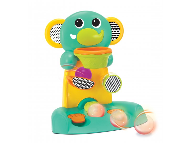 Hrací pult v podobě barevného slona umožní vašemu dítěti první trénink házení na koš! Pro větší zábavu je jeden ze dvou míčků svítící.Baterie 2xLR44 1,5V jsou součástí. Vhodné pro děti od 12 měsíců. przeczytaj całość
