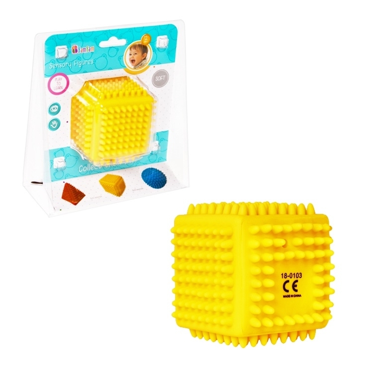 Kostka sensoryczna to coś więcej niż zwykła zabawka edukacyjna. Dostarcza dziecku nowe doznania dotykowe dzięki licznym i różnie ukształtowanym wypustkom. Różne faktury i kolory stymulują wzrok i dotyk, aktywując jego receptory sensoryczne. Zabawki sensoryczne zapewniają wszechstronny rozwój dziecka, który poprzez zabawę poprawia koordynację między świadomym chwytaniem a wzrokiem oraz rozwija zdolności manualne. Zabawka przeznaczona jest dla dzieci od 12 miesięcy.