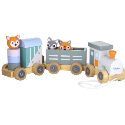 Dřevěný vláček dřevěný vlak ve stylovém designu s lokomotivou (celkem 12 dřevěných částí podporujících jemné motorické dovednosti kojenců a batolat) první vzdělávací hračka na podporu motorických dovedností: skvělý dřevěný vlak pro tlačení a hraní (vhodný pro dívky a chlapce) ekologické... przeczytaj całość