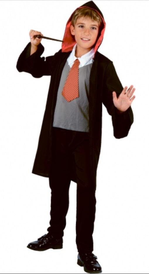 Strój Harry'ego Pottera z opowieści o tym samym tytule. Nadaje się jako przebranie na halloweenową imprezę, karnawał, przyjęcie urodzinowe lub do codziennych zabaw przebrań! Czy Twoje dziecko jest wielkim fanem Harry'ego Pottera? W takim razie właśnie to przebranie z aplikacjami w motywie ulubionej postaci czarodzieja będzie idealne. Strój składa się z długiego płaszcza z kapturem, kamizelki z krawatem oraz spodni. Całkowita długość płaszcza: ok. 74 cm, długość kaptura: 30 cm Szerokość pod pachami: ok. 42 cm Szerokość w pasie: ok. 44 cm Długość rękawa: ok. 47 cm Całkowita długość nogawic: ok. 78 cm Szerokość w pasie: ok. 24-50 cm (guma) Długość nogawic od kroku: ok. 53 cm Rozmiar: 120/130 cm Materiał: 100% poliester Producent: Godan SA Produkt nie jest licencjonowany