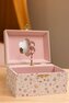 Muzyczna szkatułka na biżuterię Kwiaty i motyle to praktyczny i dekoracyjny dodatek, w którym Twoje dziecko może bezpiecznie przechowywać swoje najcenniejsze błyskotki i drobne skarby. Po nakręceniu pozytywki możecie wspólnie cieszyć się subtelną melodią, która wprowadzi przyjemną atmosferę. Dzięki kompaktowym wymiarom 8,7 x 11,7 x 14,9 cm szkatułka łatwo zmieści się na dziecięcym stoliku lub półce.