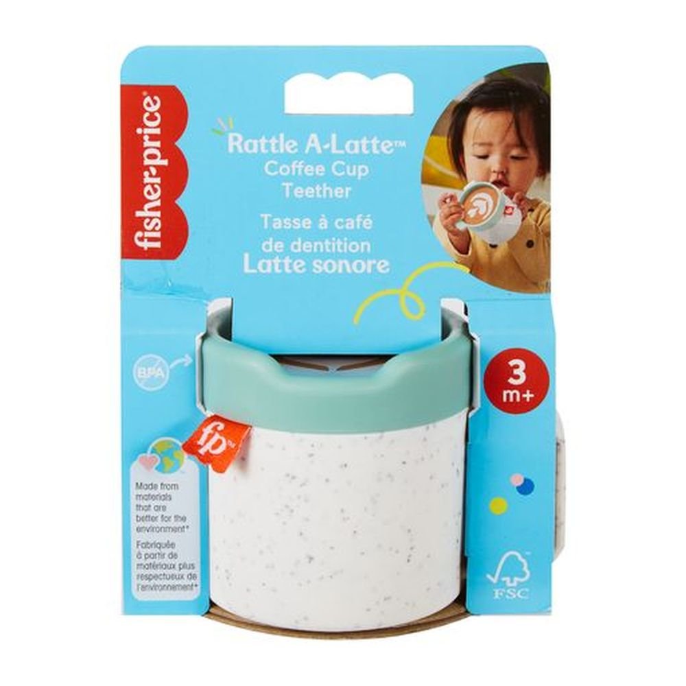 Dobré ráno, maminko! S chrastítkem a kousátkem První kávička od Fisher-Price® si užijete ranní šálek kávy se svým maličkým. Rozkošné mini provedení hrníčku vypadá stejně jako maminčin ranní kávový nakopávač! Chrasticí korálky v hrníčku poskytují hravé zapojení a zvukovou zpětnou vazbu. Hračka je vyrobena z recyklovaného materiálu, je bezpečná a šetrná k životnímu prostředí.