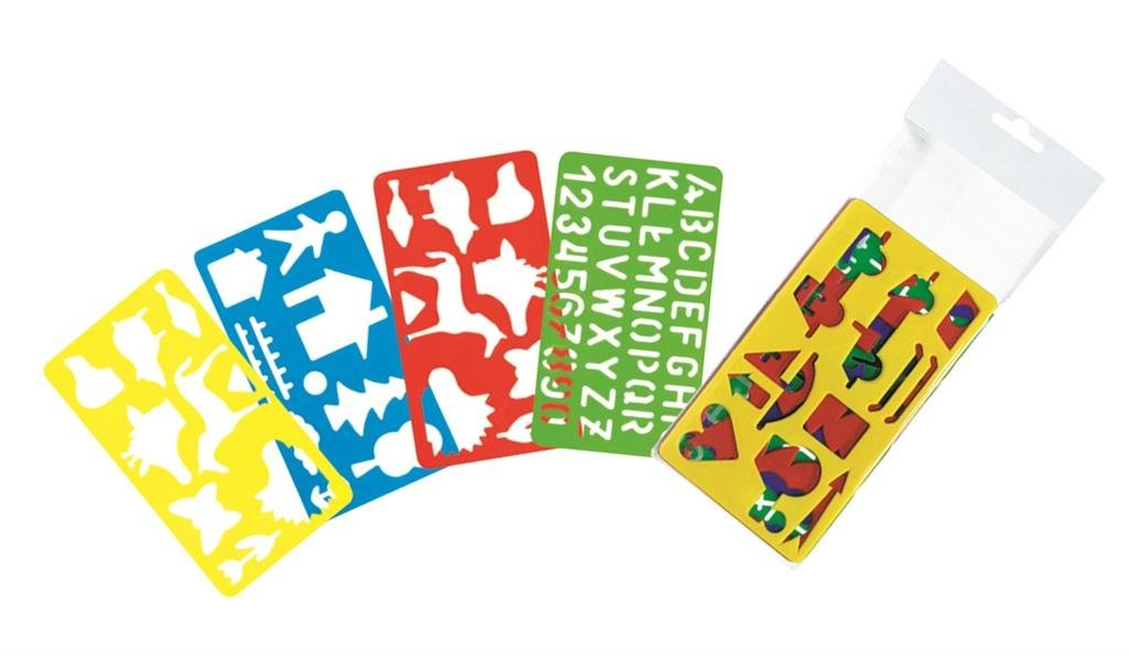 Szablony to zestaw 4 różnych plastikowych wzorników do odrysowywania. Poprzez zabawę dzieci ćwiczą umiejętności pisania i rysowania. przeczytaj całość