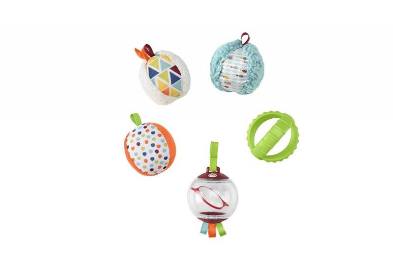 Objevte set pěti roztomilých míčků, které jsou jako na míru šité pro rozvíjející se smysly vašeho děťátka. Každý z pěti míčků má jednu svoji unikátní vlastnost, aby povzbudil a potěšil smysly vašeho děťátka. Od neodolatelných cinkavých zvuků, roztomilého kousátka, uklidňující levandulové vůně,...
