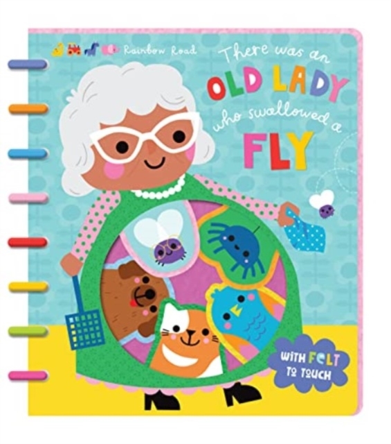 "There was an old lady who swallowed a fly . . . then wanted it gone straight away!Little ones will love this fun addition to our Rainbow Road series, with soft felt and card tabs to explore. Rainbow-coloured plastic loops hold the pages together, creating a tactile and durable spine." przeczytaj całość