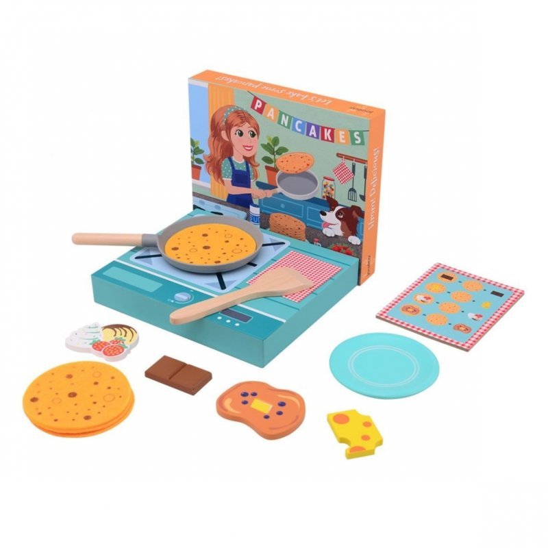 sada obsahuje 4 palačinky (PES) a dřevěné příslušenství - servírovací tác, prostírání, pánvičku, obracečku, různé pochutiny aj.krabička slouží zároveň jako sporákcelkem 13kspomáhá k rozvoji koordinace očí a rukourozvíjí dětskou fantaziirozměr: 20cm x 17cm x 4cmvhodné pro děti od 36 měsíců przeczytaj całość