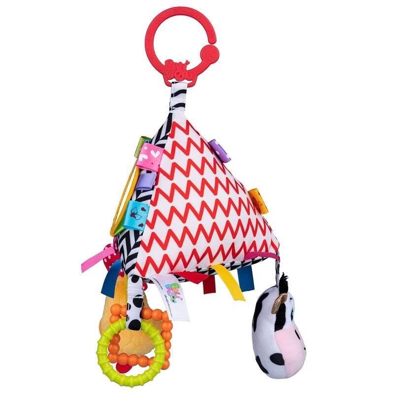 Krówka i kogucik zapraszają wszystkie bobasy do zabawy! W ich piramidce pochowały się różne skarby, a wśród nich bezpieczne lusterko, piszczałka, gryzaki i kolorowe metki o zróżnicowanych fakturach. W główkach zwierzaków kryją się dzwoneczki, natomiast ścianki piramidki zdobią kontrastowe wzory,...