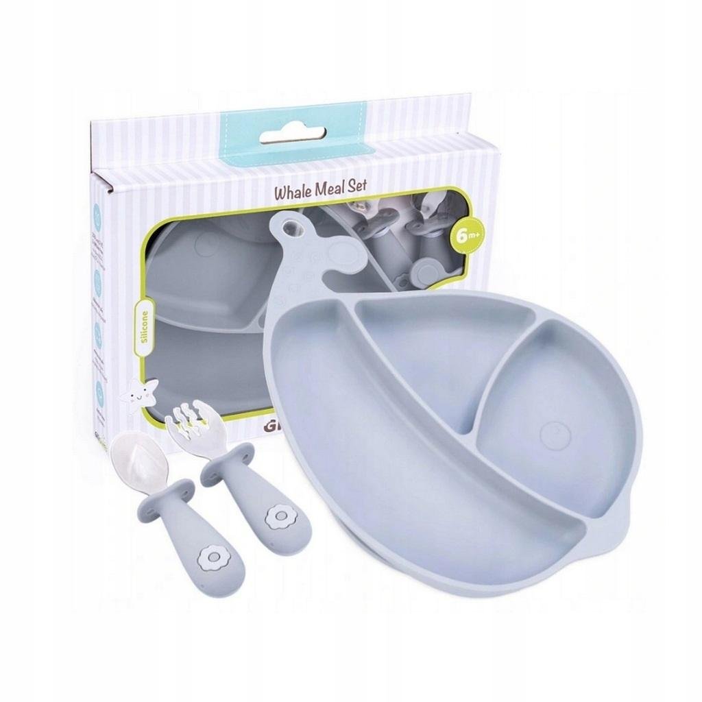 Wieloryb - talerz + sztućce szary