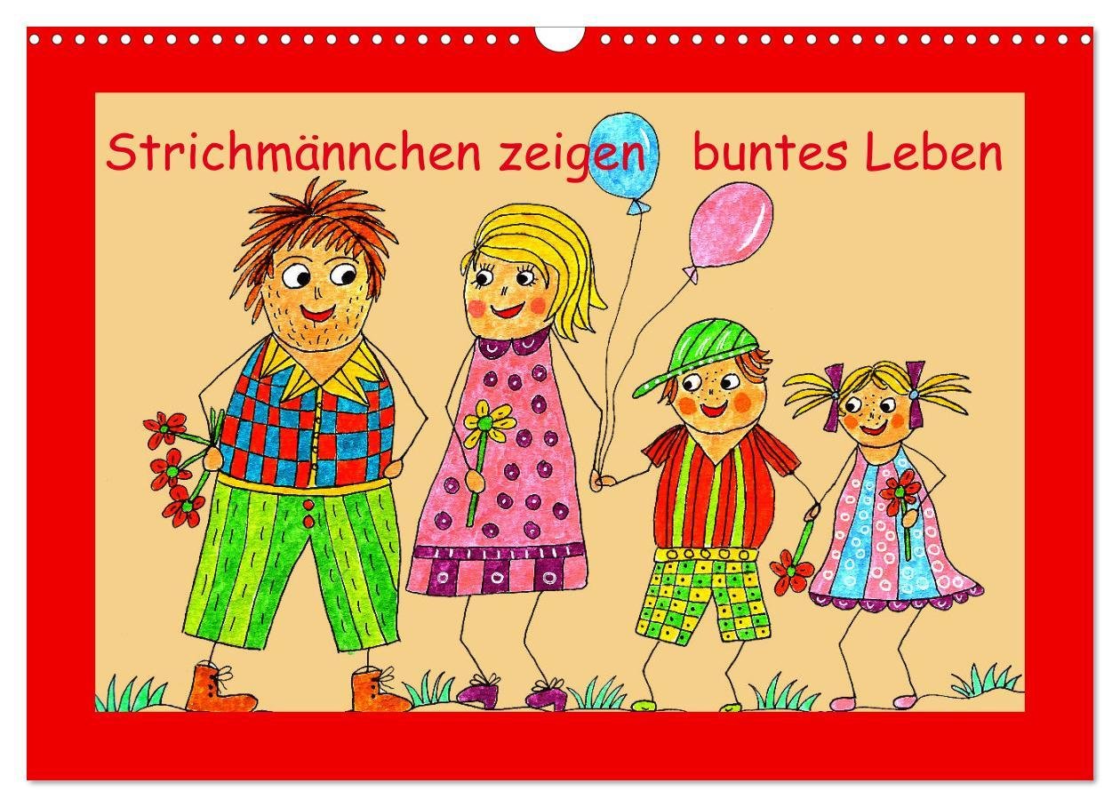 Strichmännchen zeigen buntes Leben (Wandkalender 2024 DIN A3 quer), CALVENDO Monatskalender (niemiecki)