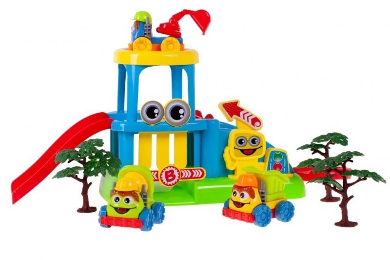 Dobře udělané parkoviště se skluzavkou a 3 okouzlujícími stavebními vozidly je určeno pro děti od 3 let.