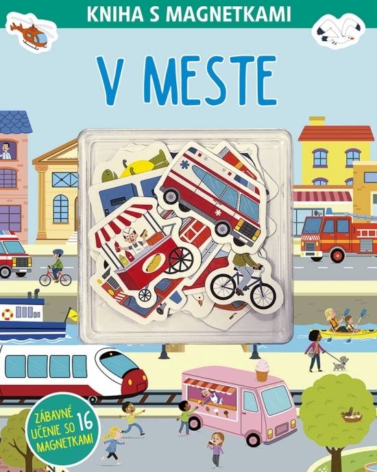 Kniha s magnetkamiV MESTEAké dopravné prostriedky môžeme vidieť v meste a na uliciach? Na akom mieste stojí predavač občerstvenia? A na koho čaká autobus na zastávke?Pomocou 16 farebných obrázkových magnetiek môžu deti vymýšľať vlastné príbehy o tom, čo sa deje v meste. Neustále tak môžu zapájať...