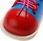 Dzieci zyskują pewność siebie, gdy potrafią same zawiązać sznurówki przy butach. Buty są wykonane z drewna.