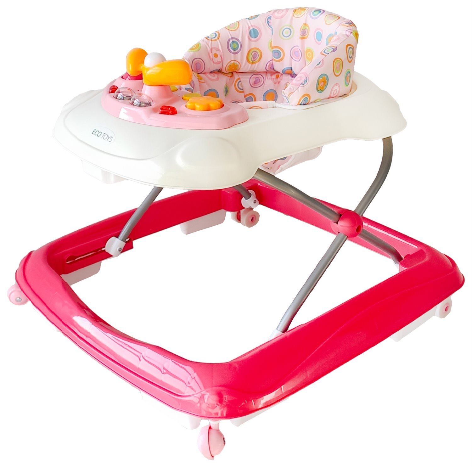Dětské interaktivní chodítko s hracím pultíkem je určeno pro děti od 6 měsíců. Výšku chodítka lze na stavit dle výšky dítěte. Přední kolečka jsou otočná o 360°, zadní silikonová slouží zároveň jako zábrana jízdy pozpátku. Na spodní straně je umístěn stabilizační rám zabraňující převrácení....